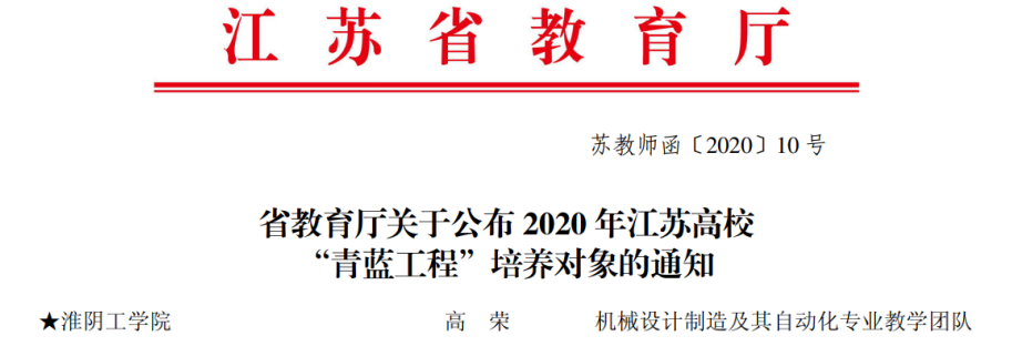 2020年江苏高校“青蓝工程”优秀教学团队——机械设计制造及其自动化