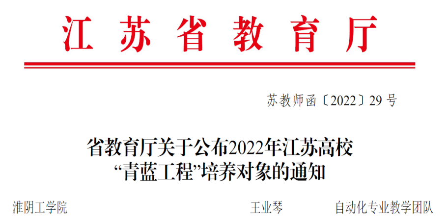 2022年江苏高校“青蓝工程”优秀教学团队——自动化